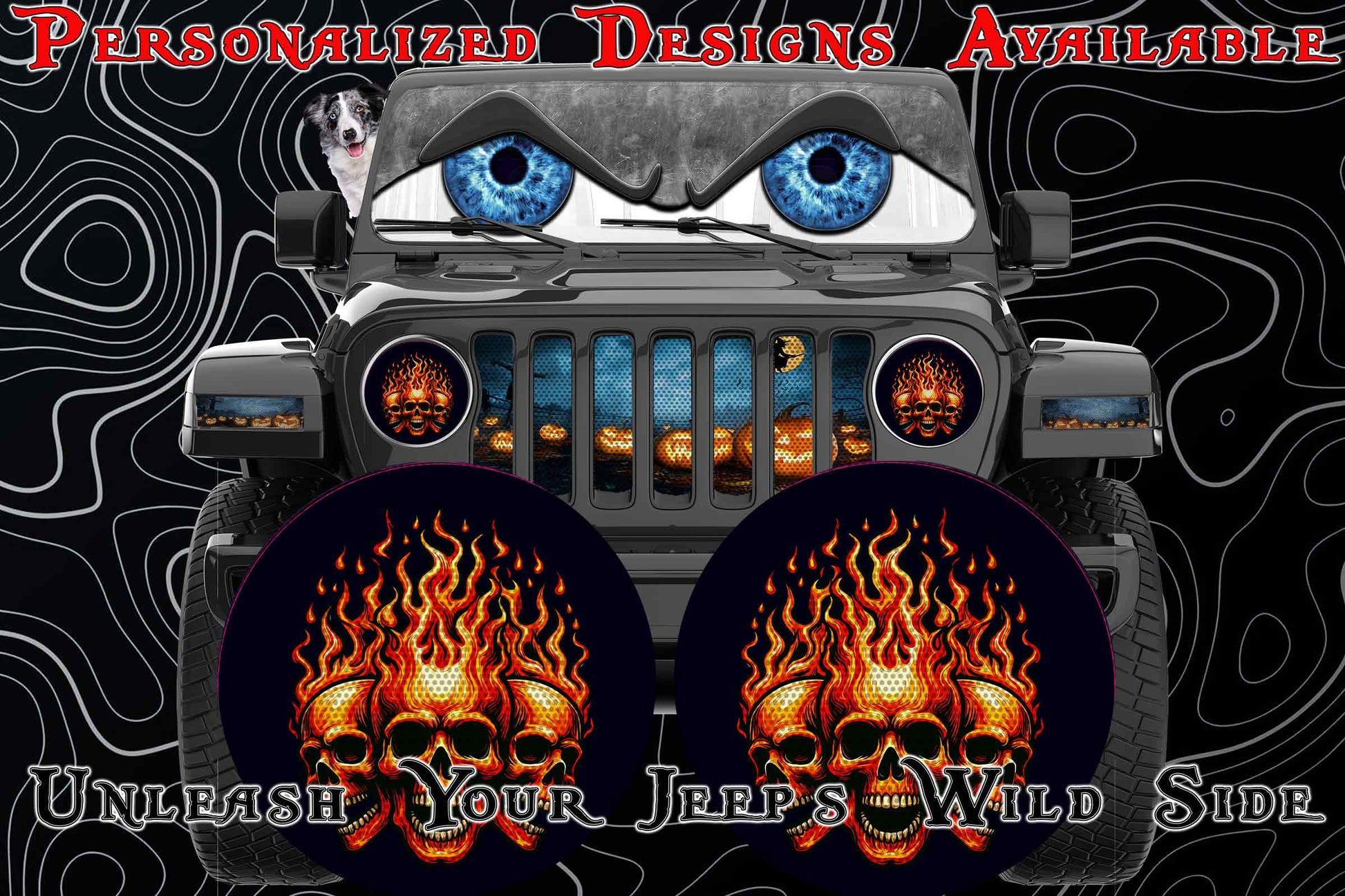 I have a pair of pink eyes on my Jeep and LOVE them. Just bought the flaming skulls for my husbands mammoth Jeep. These are so cool and were very easy to put on. Keep up the great work Larry….we love your products and will be purchasing other items.