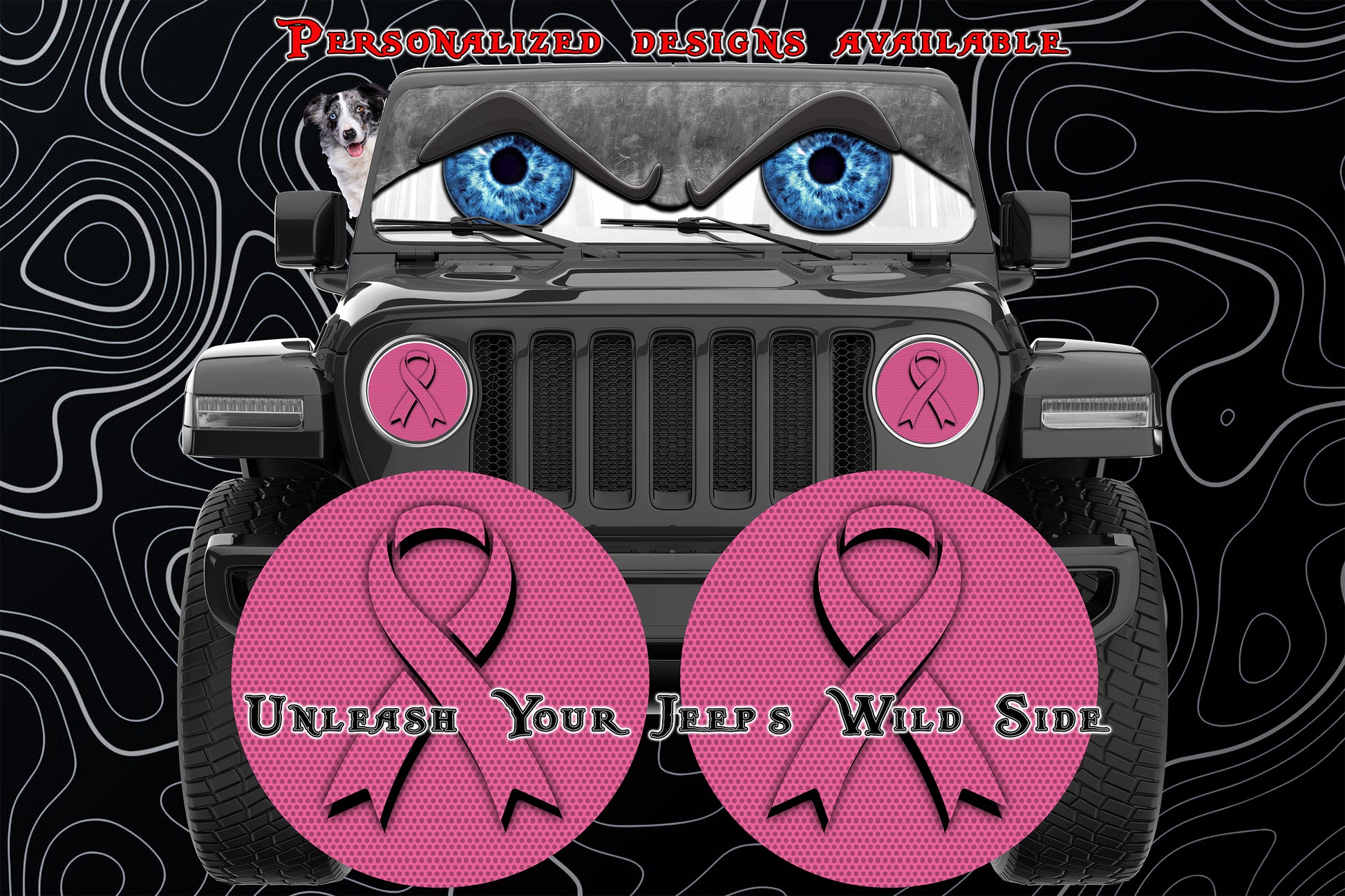 Show your support with this playful breast cancer awareness decal designed for round headlights. Easy to apply and durable, it adds a touch of personality while spreading an important message. Perfect for drivers who want to combine style with a cause.