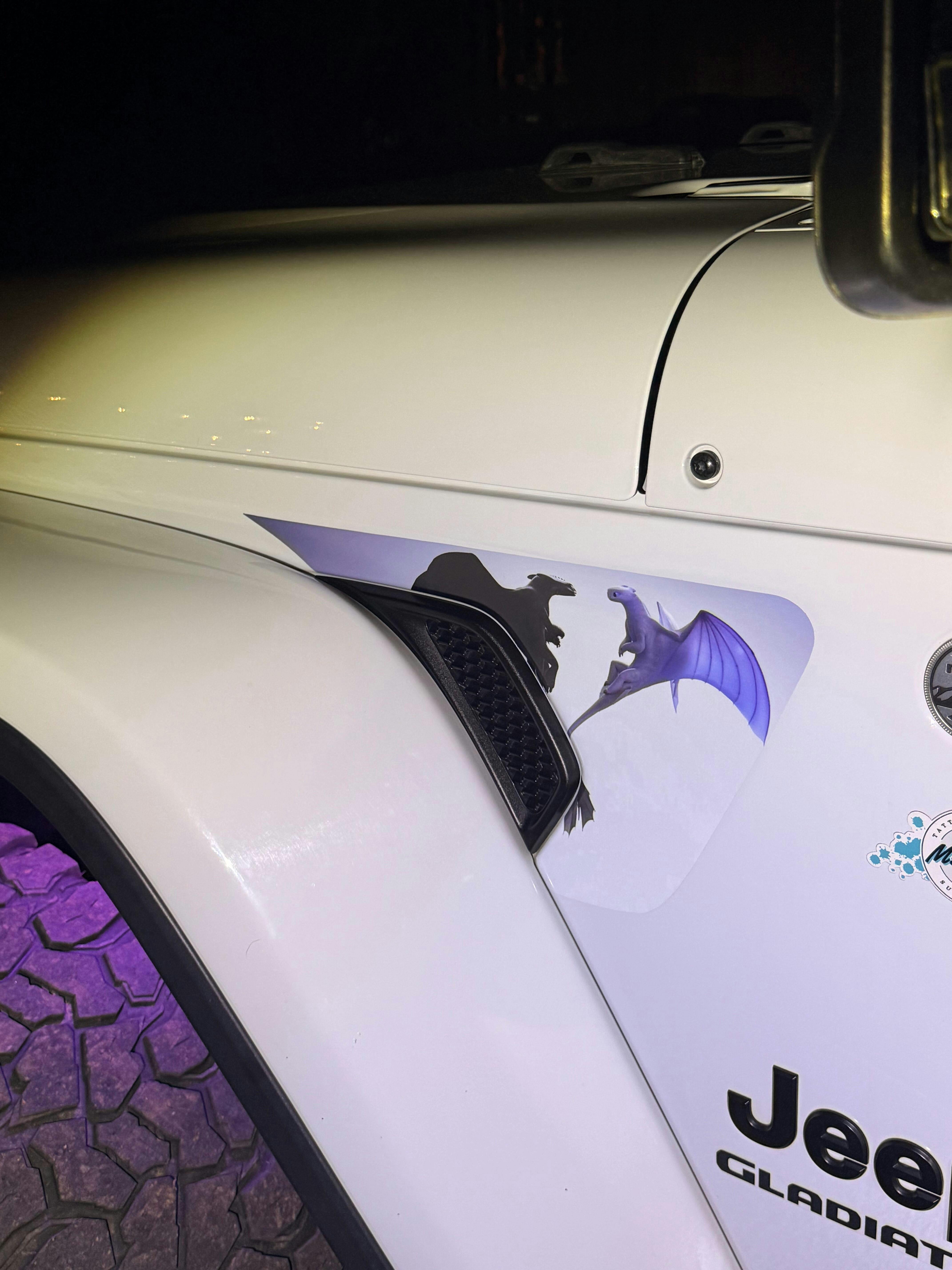 Add a splash of style and function to your JL or JT (2018 or newer) with this custom fender vent. Designed just for your ride, it boosts airflow while giving your vehicle a unique, eye-catching look. Perfect for those who want to stand out and keep things cool under the hood!