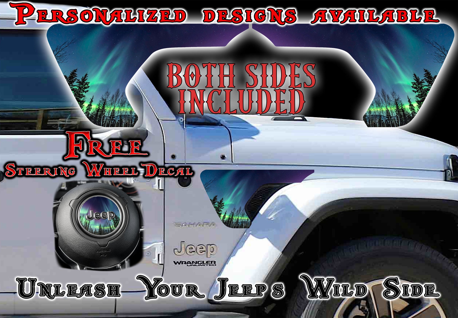 Transform your Jeep JL or JT 2018+ with our premium Northern lights fender vent decals. These custom-printed accents instantly elevate your vehicle's appearance, giving it a distinctive edge that commands attention. Add a touch of luxury and personality to your ride with these eye-catching decals designed specifically for modern Jeep models.