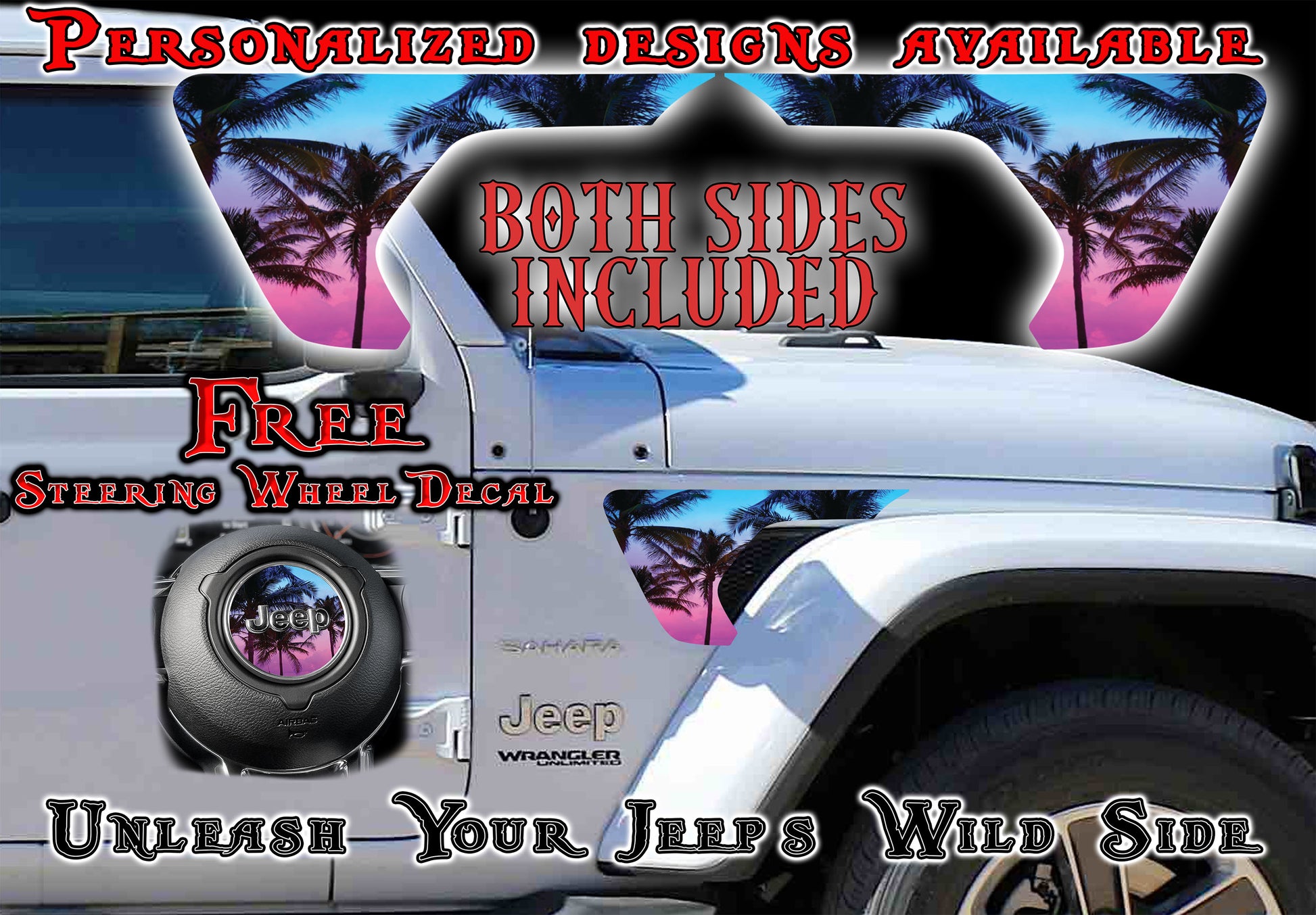 Elevate your Jeep JL or JT (2018 and newer) with the Palm Island fender vent, a refined accessory designed to complement newer models with subtle tropical elegance. This sophisticated detail enhances your vehicle’s aesthetic, offering a unique blend of style and quality that reflects your discerning taste.