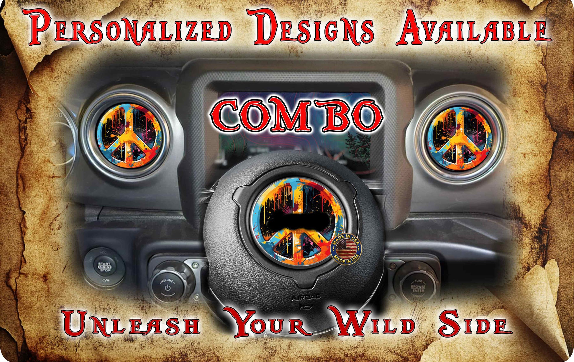 Transform your Jeep into a unique and stylish ride with our Inside Vent cover Decals. Dress up your air vents with our one-of-a-kind designs. Stand out from the crowd and show off your individuality with these easy-to-install decals. Elevate your Jeep game today!