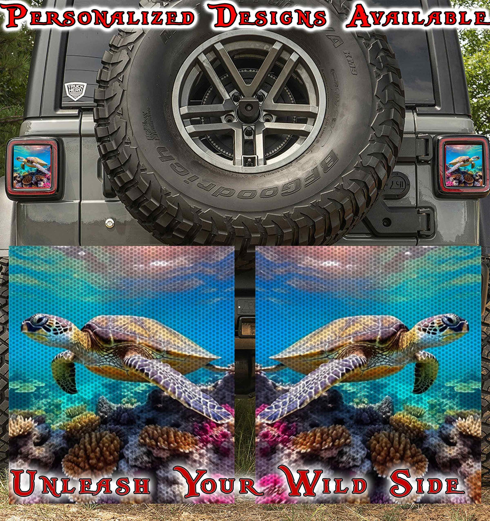 Dive into coastal vibes with this charming sea turtle taillight cover decal. Perfect for ocean lovers and eco-conscious drivers, this design transforms your vehicle's rear lights into a whimsical underwater moment. Easy to apply, weather-resistant, and sure to spark conversations at every stoplight. Let your car shell out some personality—because life's too short for boring taillights.