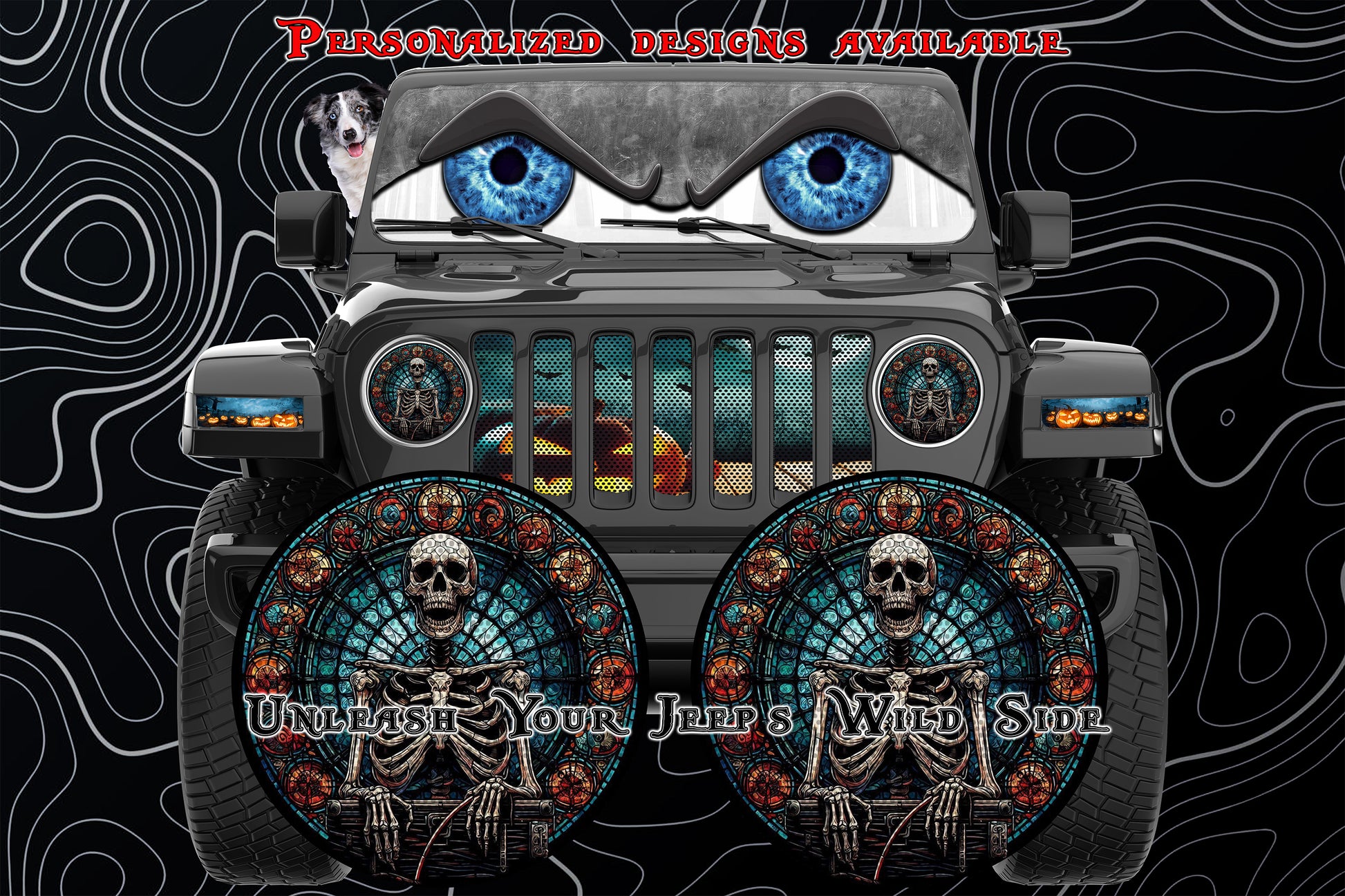 Skeleton stained glass round headlight decals