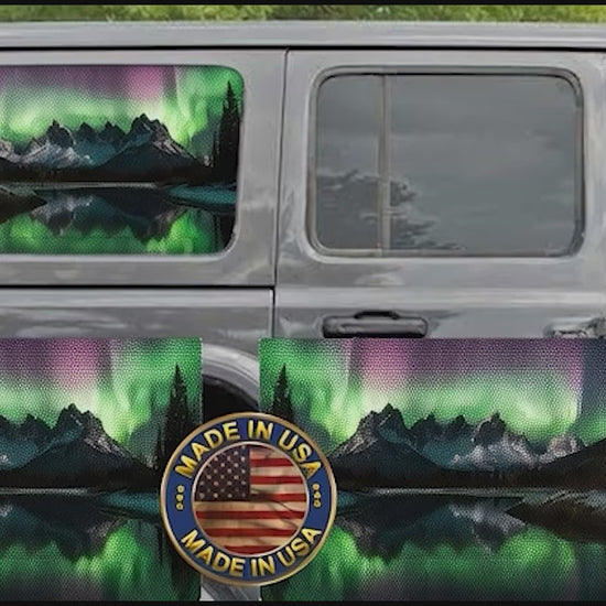 Want your ride to stand out? Let us create a custom window wrap for you! Make your car one-of-a-kind with our rear quarter window see-through graphic.